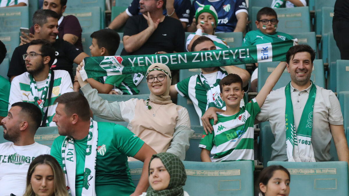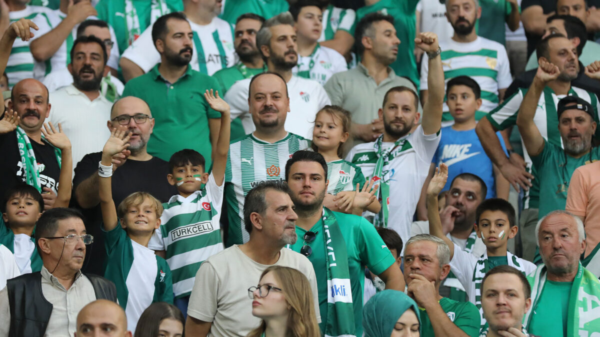 Bursaspor, bu sezon kendi sahasında 2 maç oynadı. İkisinde de tarihinin ve ligin seyirci rekorlarını kırdı. Tribünlerde 7’den 70’e yeşil beyaz atan kalpler renkli görüntüler oluşturdu.