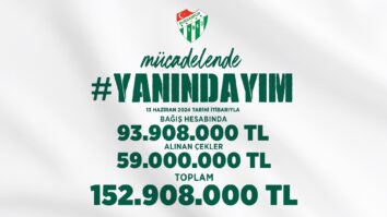 Bursaspor Kulübü, ‘yanındayım’ kampanyasının 16. gününde toplanan rakamı açıkladı.