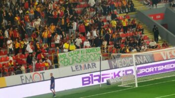 Göztepe taraftarları, Erzurumspor maçında, “And olsun ki dönecek Bursaspor” diye pankart açarak yeşil-beyazlı kulübe destek…