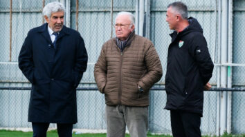 Bursaspor Kulübü ile kırmızı kart gören Teknik Direktör Ümit Şengül ve yardımcı antrenör Serkan Türkay,…