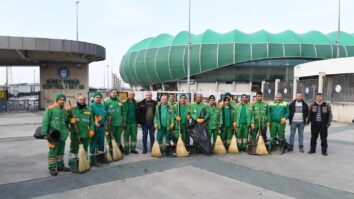 Atatürk Spor Kompleksi Matlı Stadyumu’nun temizliğine Osmangazi Belediyesi katkı veriyor.