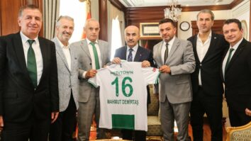 Bursaspor Kulübü Başkanı Recep Günay, Yönetim Kurulu üyeleri; Metin Genç, Sedat Topaloğlu, Turan Cesur, Ali…