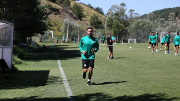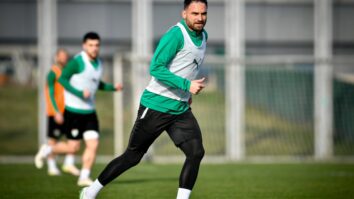 Bursaspor’un 32 yaşındaki santraforu Tahir Babaoğlu, kondisyon geliştirici bireysel çalışmalar yapıyor.