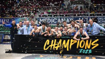 Gençler Basketbol Şampiyonlar Ligi finali sonrası düzenlenen seremonide dereceye giren takımlara madalya ve kupaları takdim…